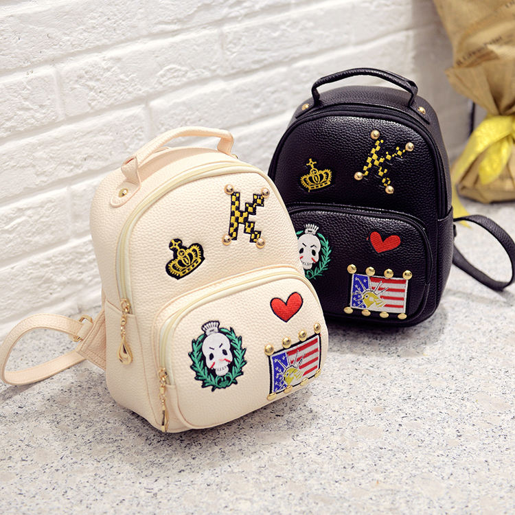 时尚复古独特的青少年女孩黑色背包高中女生书包