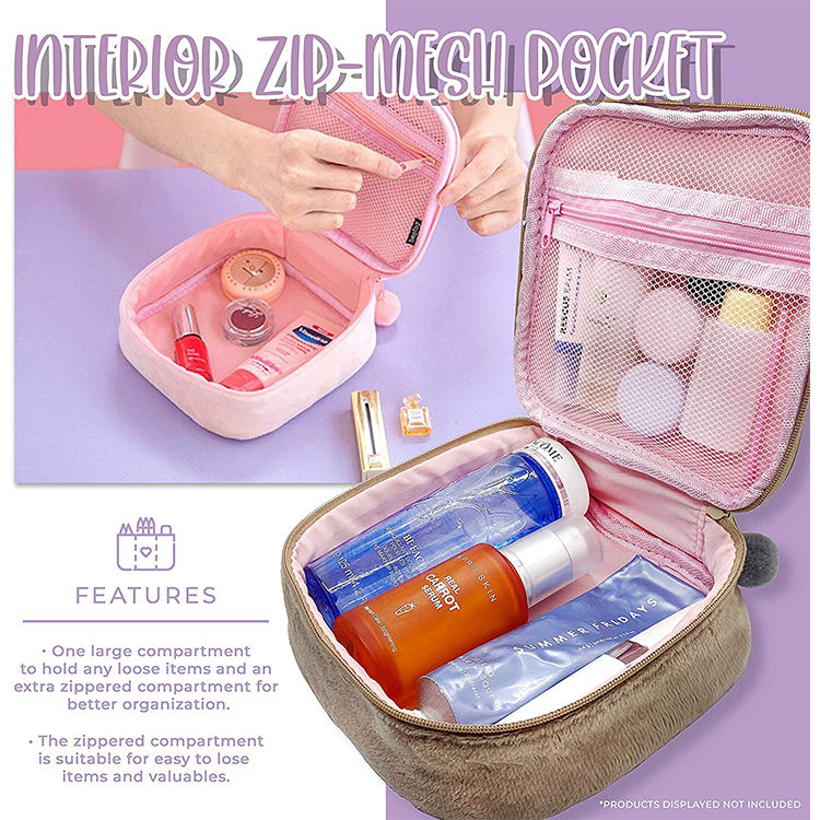 可爱动物定制化妆包粉色天鹅绒化妆包旅行家居收纳内袋2021小毛绒小袋女款