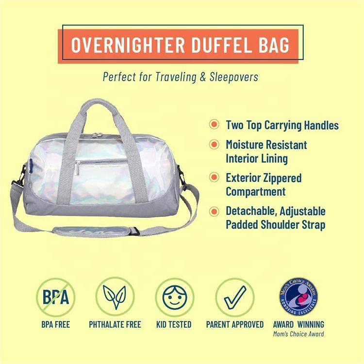 全息行李袋儿童闪亮高品质女孩健身房舞蹈袋男孩和女孩金属PU全息行李袋