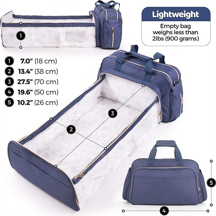 3合成1婴儿尿布袋背包,带更换站床豪华定制批发多功能尿布湿手提袋