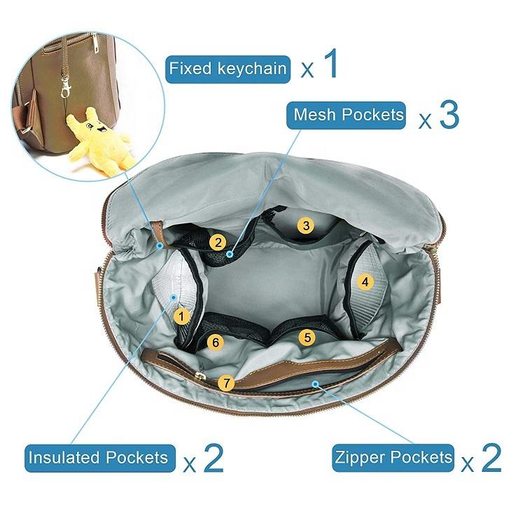 皮革尿布袋定制纯素食皮革奢华木乃伊婴儿背包尿布袋