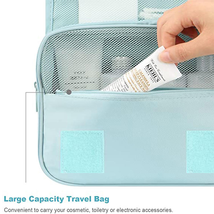 便携式大型化妆品涤纶织物蓝色美容悬挂化妆品旅行全息化妆包盒成人