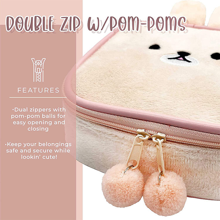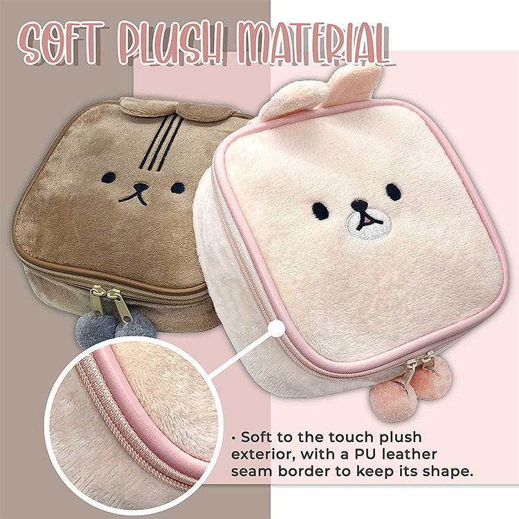 可爱动物定制化妆包粉色天鹅绒化妆包旅行家居收纳内袋2021小毛绒小袋女款