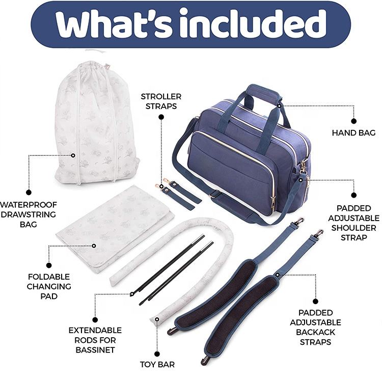 3合成1婴儿尿布袋背包,带更换站床豪华定制批发多功能尿布湿手提袋
