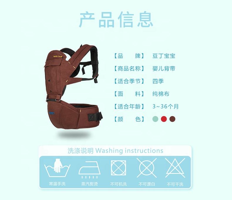 行业属性是否可折叠是其他属性原产地Guangdong, China材质棉花品牌OEM型号BCB-774框架材质其他承重15kg适用年龄6 months - 3 years认证无类型婴儿背带功能携带婴儿, 功能性,可拆卸颜色红色/粉红色/蓝色/自定义徽标定制尺寸在详细信息页面重量1.04kg填料纸箱样品提前期7-10天包装和发货信息销售单位:单一商品单品包装尺寸:28X19X24 厘米单品毛重:1.