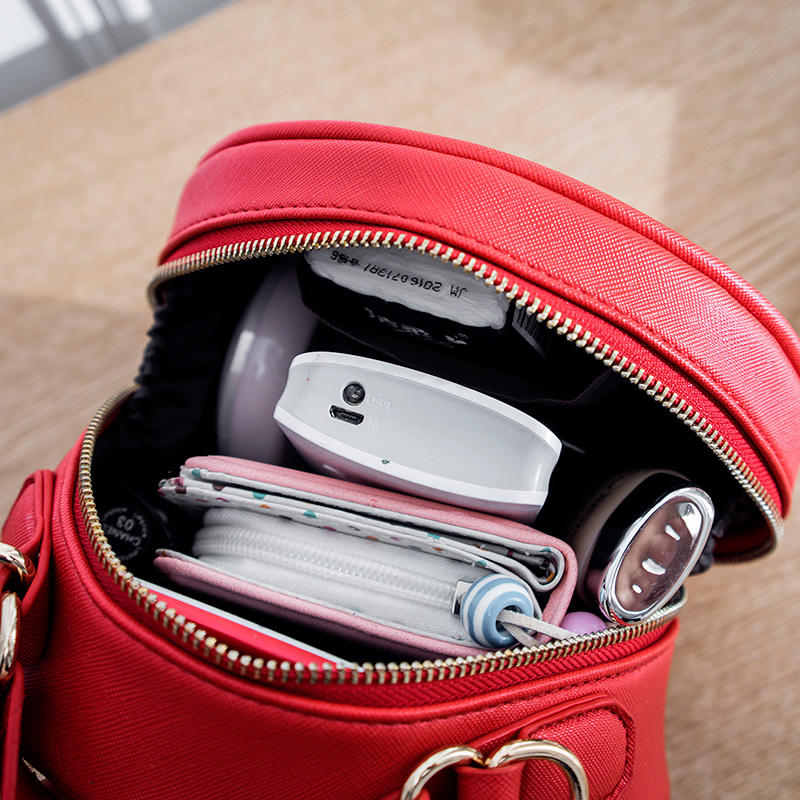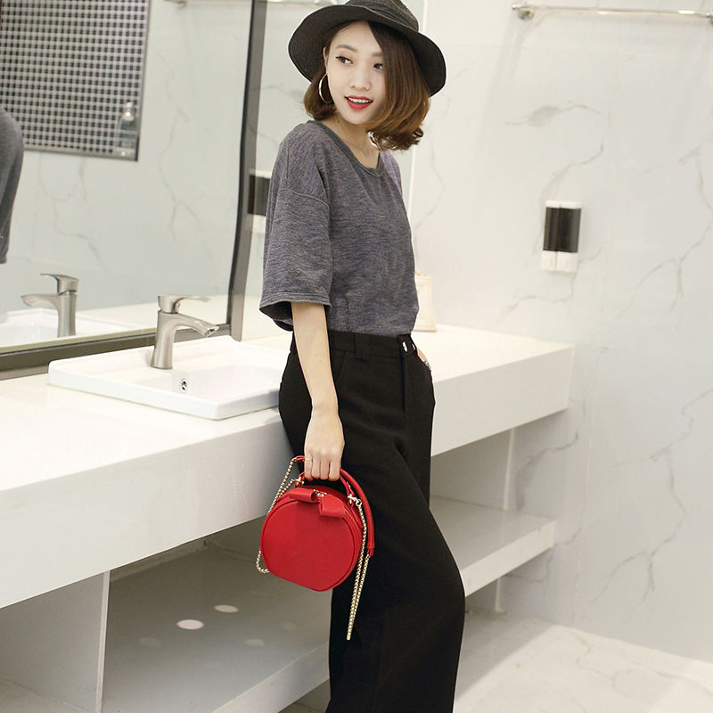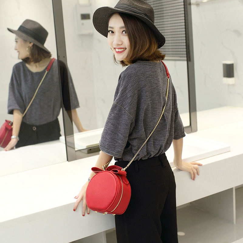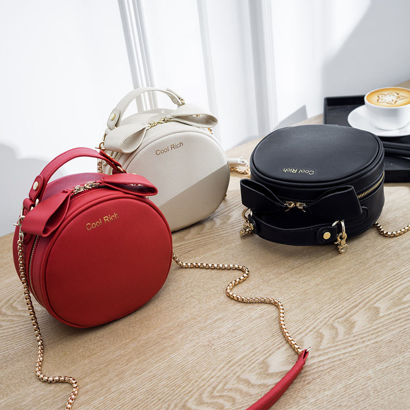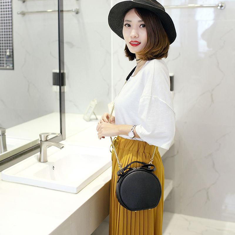 圆形女性斜挎包长金属链带吊带钱包手袋与链