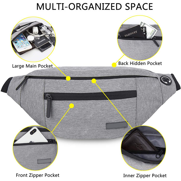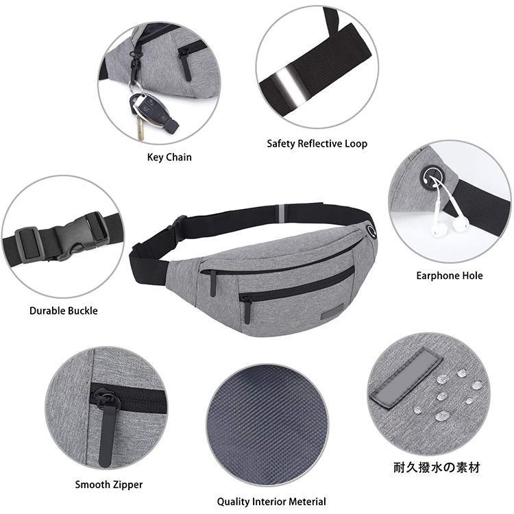腰包旅行运动健身房定制男士防水胸袋钱手机设计师男孩吊带带4个拉链袋